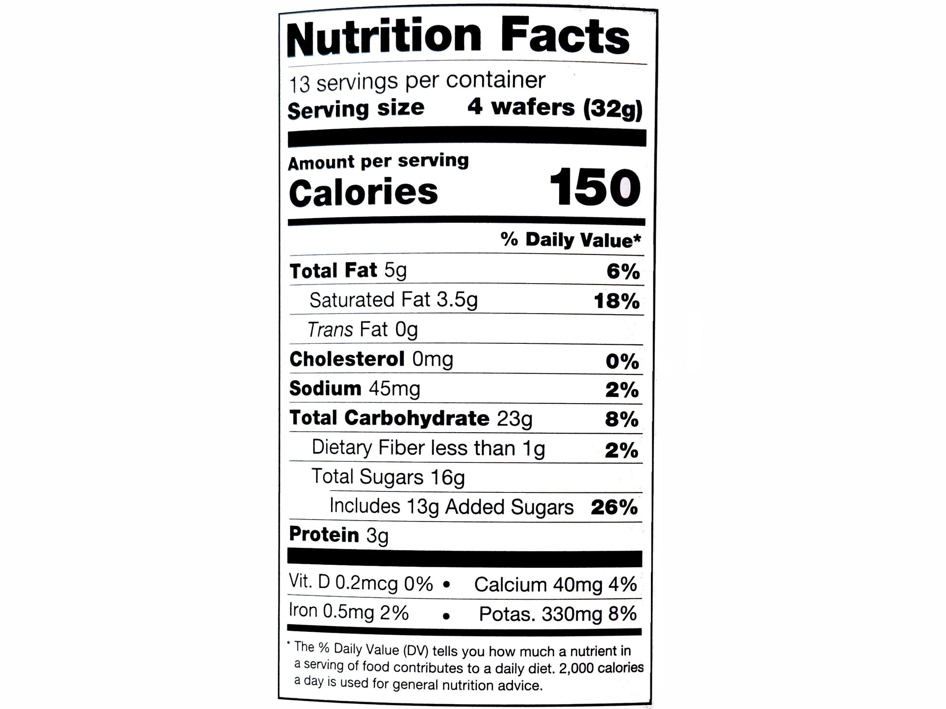 INGREDIENTS (Vanilla Wafer): Sugar, Enriched Wheat Flour (Wheat Flour, Niacin, Iron, Thiamin, Riboflavin, Folic Acid), Coconut Oil, Skim Milk Powder, Whey Powder, Soy Flour, Barley Malt, Soya Lecithin, Glucose Syrup, Natural Flavor, Vanilla