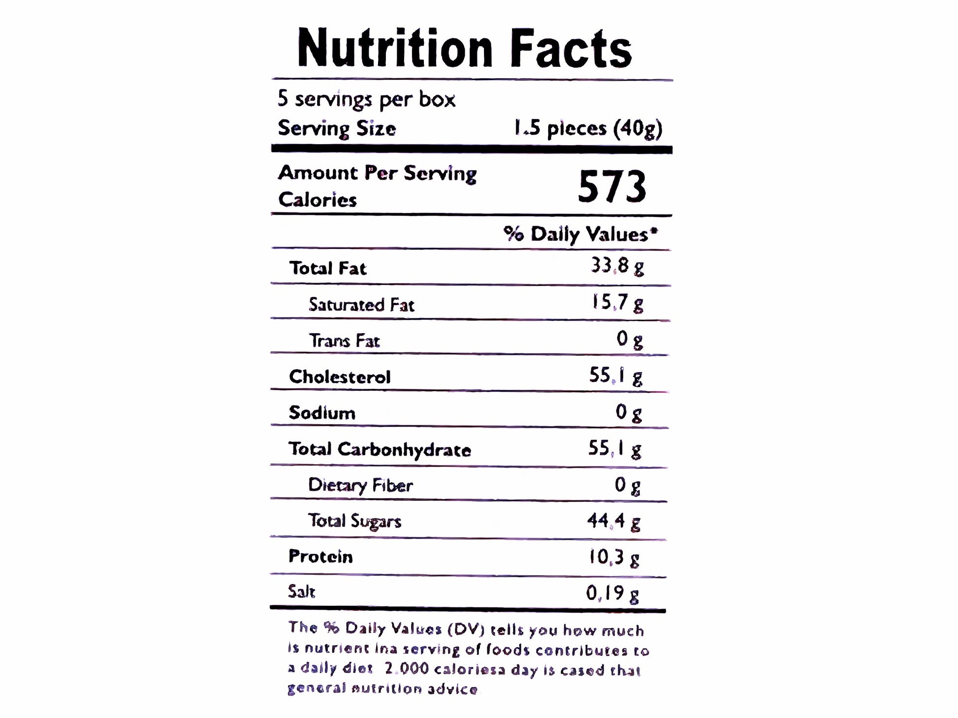 Allergen warning: containing Milk, dairy products, Pistachio, Soya, Gluten