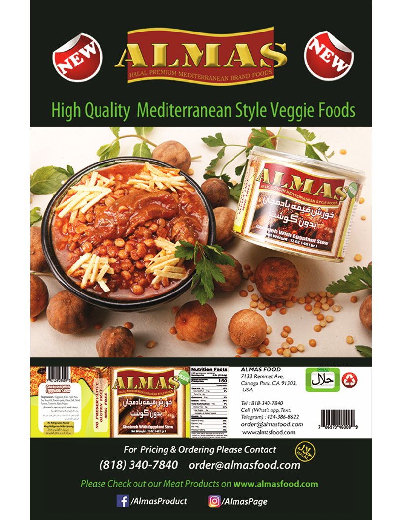 Ingredients: Eggplant, Water, Split Peas, Soy Bean Oil, Tomato Paste, Onion, Dried Lime, Salt, Turmeric, Black Pepper