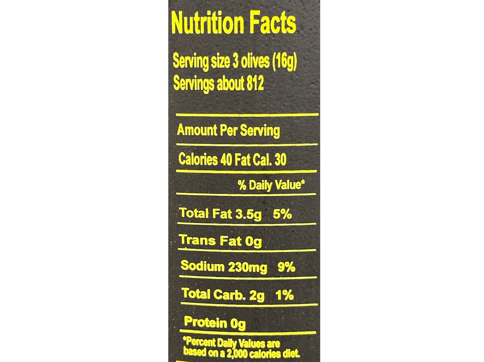 Ingredients: Kalamata Olives, Water, Salt, Acetic acid, Oil