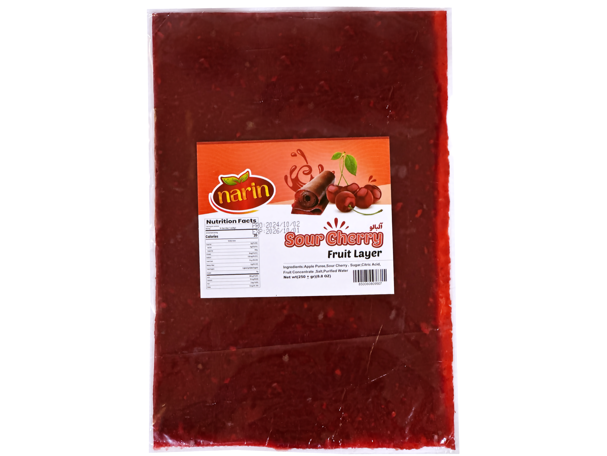 Sour Cherry: Apple puree, Sour Cherry, Sugar, Citric acid, Fruit concentrate, Salt, Purified Water