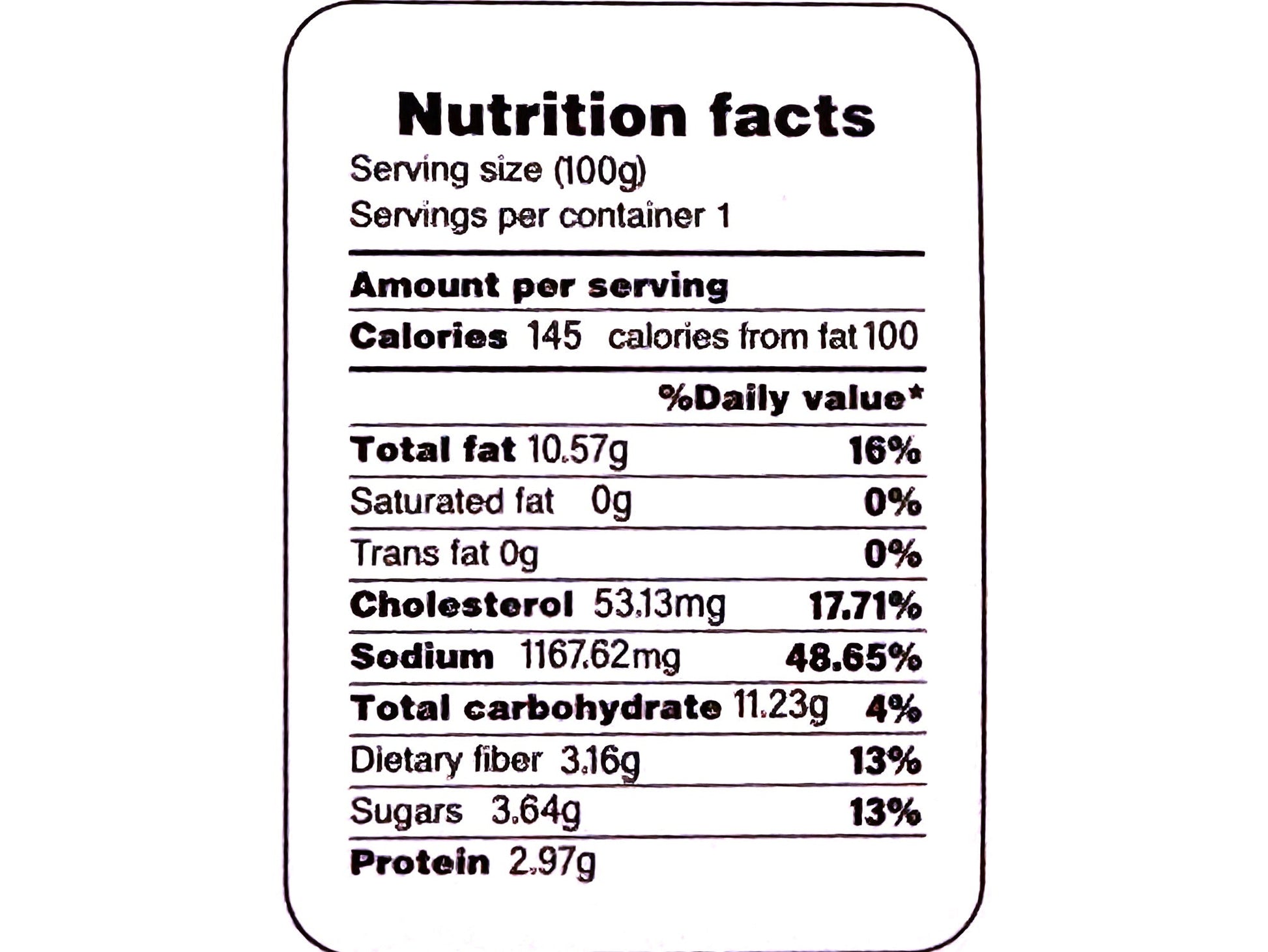 Ingredients: eggplant, onion, tomato, vegetable oil, garlic, salt, turmeric, pepper, water.