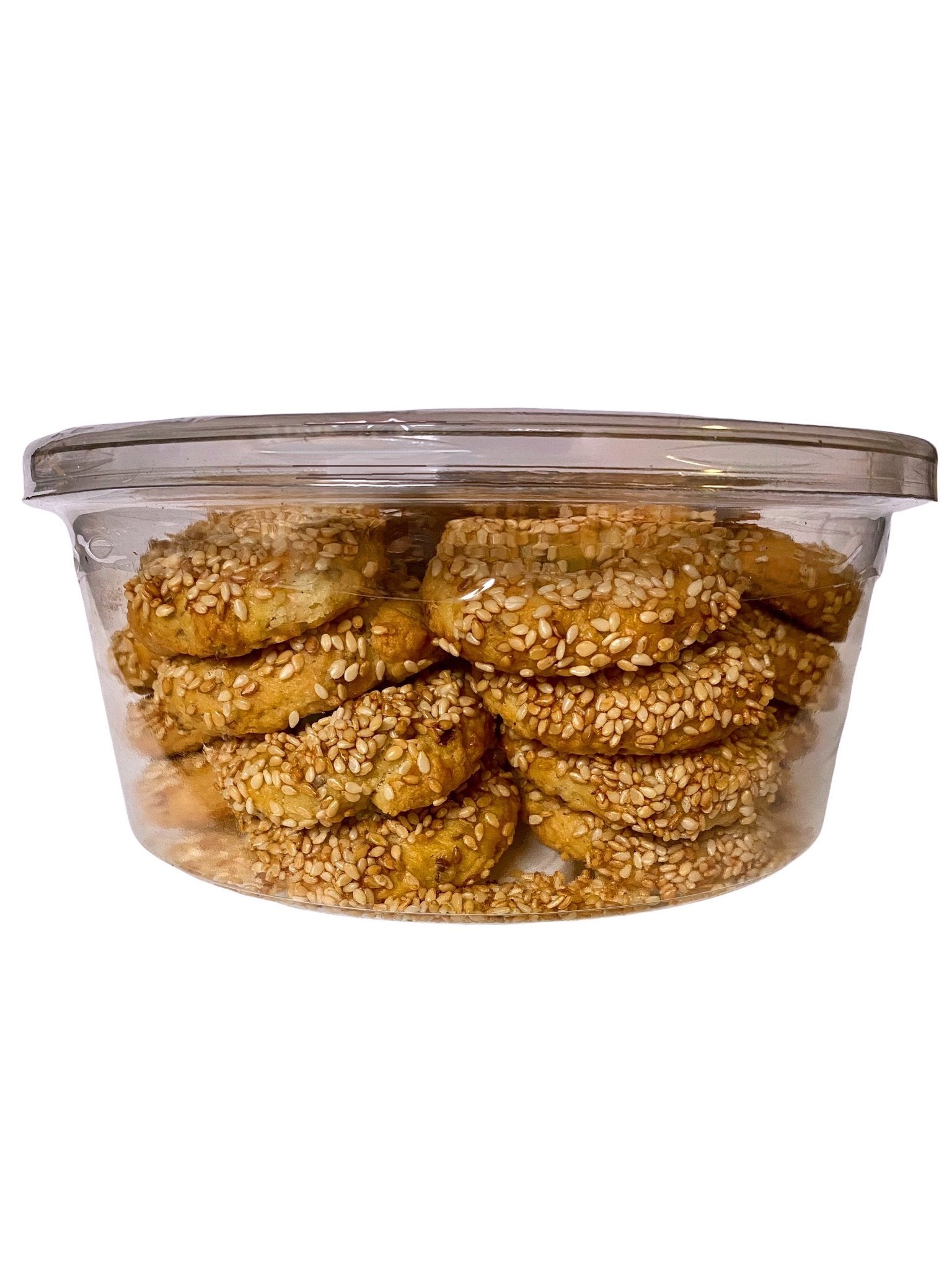 Ingredients: Unbleached Wheat Flour(Wheat flour, Malted Barley Flour, Niacin, Iron Thiamin, Mononitrate, Riboflavin, Folic acid), Margarine(Interestenfied Soybean Oil, Water, Salt, Mono, and Diglycerides, Colored with Annatto/Tumeric, Calcium, Mahlab, Salt, Disodium EDTA added as a preservative, artificial Butter flavor, Vitamin A palmitate added), Water, fully refined Soybean Oil, Sesame seeds, Anise seed, leavening agents(Yeast)