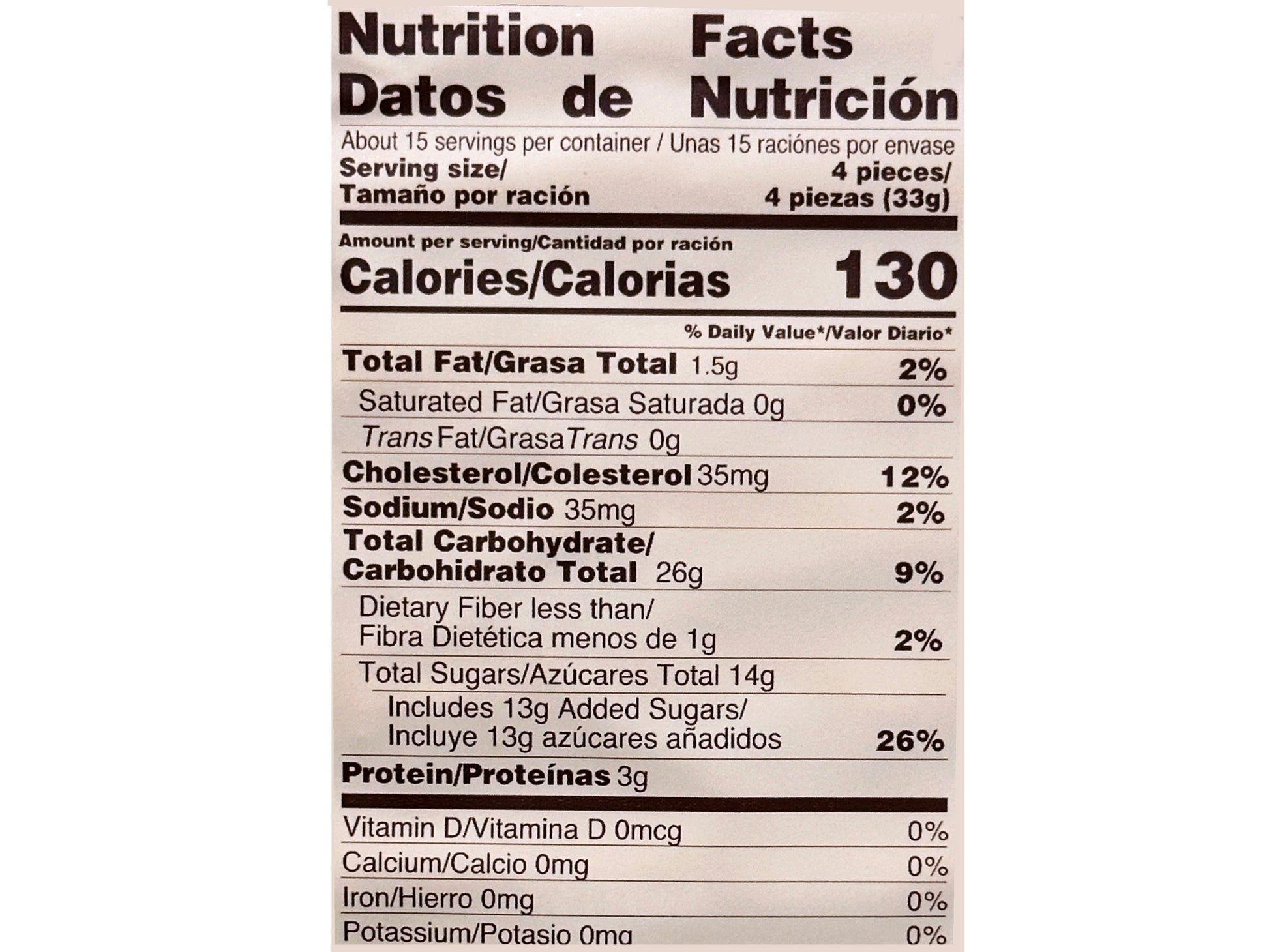 Wheat Flour, Sugar, Eggs, Raising Agents (Sodium Carbonate Acid, Ammonium Carbonate Acid), Glucose Syrup, Natural Flavors, Salt