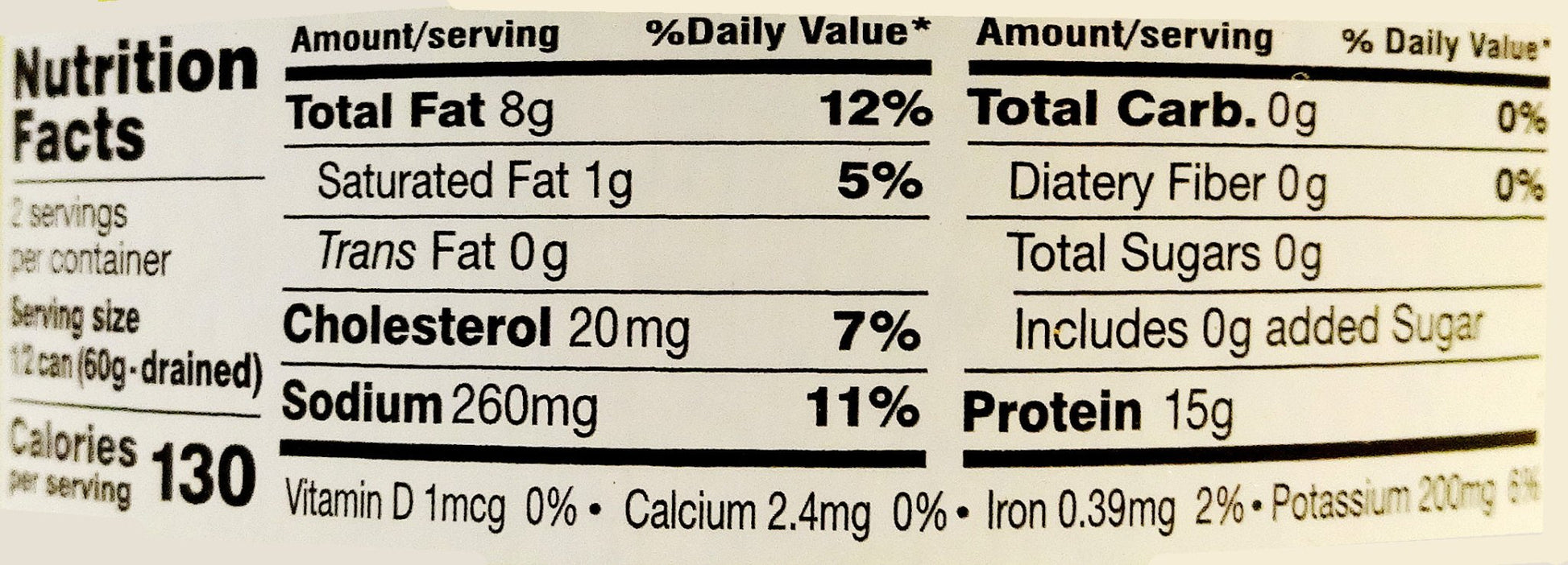 Ingredients: Solid Light Tuna, Olive Oil Extra Virgin, and Salt